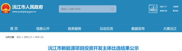2月17日,湖南省沅江市人民政府下發(fā)《沅江市新能源項(xiàng)目投資開發(fā)主體比選結(jié)果公示》,共下發(fā)了1.58GW,包含1.38GW光伏項(xiàng)目、0.2GW風(fēng)電項(xiàng)目。