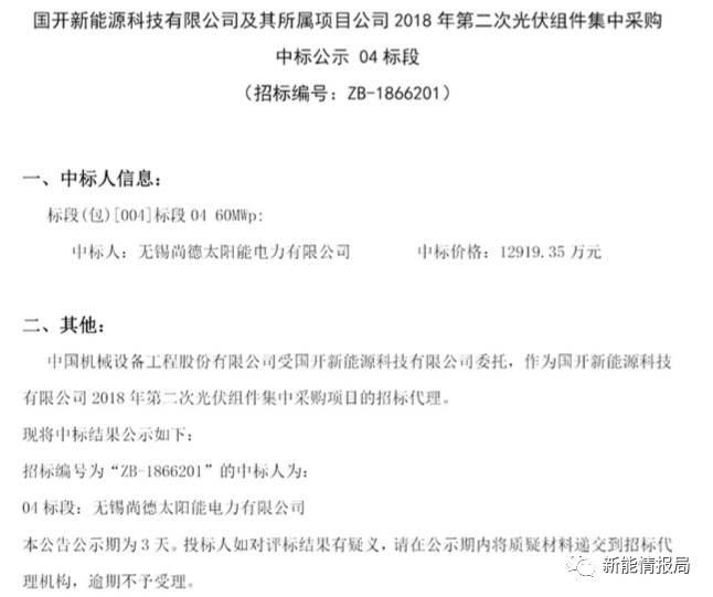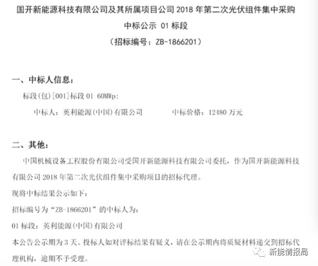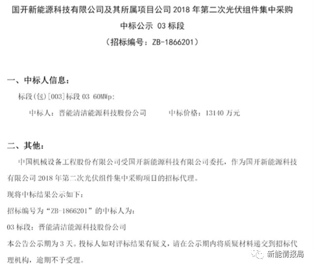 7月28日,國(guó)開新能源科技有限公司及其所屬項(xiàng)目公司發(fā)布2018年第二次光伏組件集中采購(gòu)中標(biāo)公示。