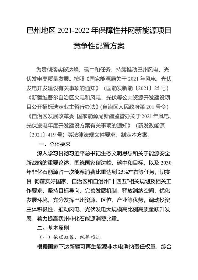項(xiàng)目名稱:巴州地區(qū)2021-2022年保障性并網(wǎng)新能源項(xiàng)目