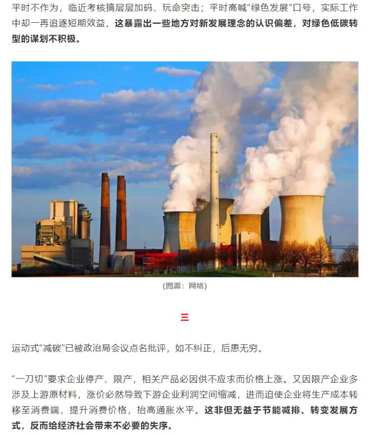 在這一政策的影響下,各地政府層層加碼,許多企業(yè)生產(chǎn)陷入停滯,甚至有部分地區(qū)居民生活用電、用水也受到影響。對此,人民日報海外版《俠客島》評論稱,平時不作為,臨近考核搞層層加碼、玩命突擊;平時高喊“綠色發(fā)展”口號,實際工作中卻一再追逐短期效益,這暴露出一些地方對新發(fā)展理念的認識偏差,對綠色低碳轉(zhuǎn)型的謀劃不積極,“跟開學(xué)前狂補作業(yè)一個道理。”
