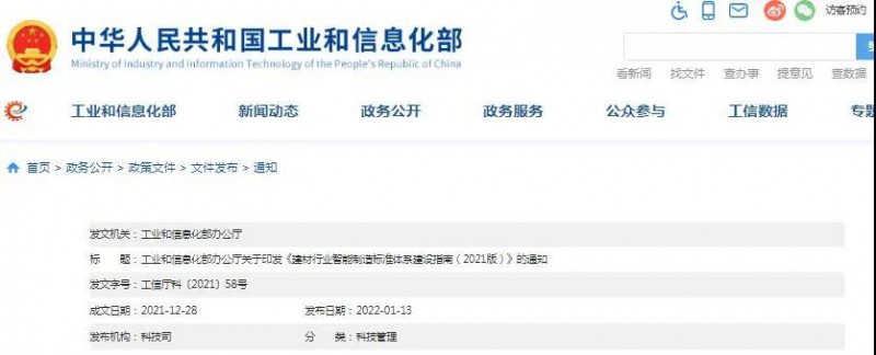 關于印發(fā)《建材行業(yè)智能制造標準體系建設指南(2021版)》的通知
