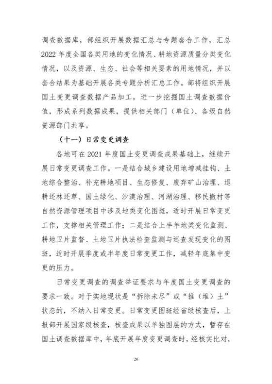 根據(jù)工作需要,部組織編制了《2022年度全國國土變更調(diào)查實(shí)施方案》,并對(duì)《年度國土變更調(diào)查技術(shù)規(guī)程》作了修訂,隨本通知一并印發(fā)執(zhí)行。