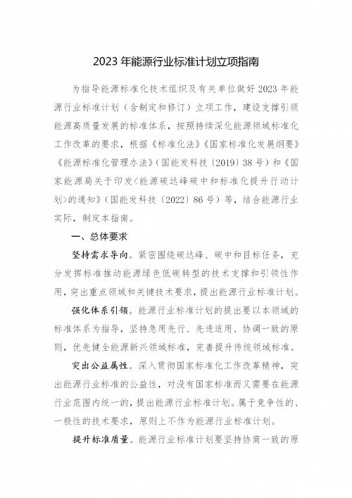 國家能源局綜合司關(guān)于印發(fā)《2023年能源行業(yè)標(biāo)準(zhǔn)計(jì)劃立項(xiàng)指南》的通知