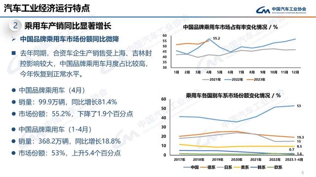 具體看,中國(guó)品牌乘用車市場(chǎng)份額同比微降。去年同期,合資車企生產(chǎn)銷售受上海、吉林封控影響較大,中國(guó)品牌乘用車月度占比較高,今年恢復(fù)到正常水平。