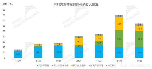 2023 年上半年,公司整車銷售業(yè)務(wù)實現(xiàn)營收 603 億元,同比增 23%,超出市場預(yù)期 10.8%。在銷量(不含領(lǐng)克、睿藍(lán))同比增長 12% 的但銷量數(shù)據(jù)市場已知的情況下,單車 ASP 超出市場預(yù)期 13.3%,帶動整車銷售業(yè)務(wù)大幅度超預(yù)期。