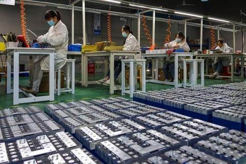 2023年11月22日,江西新余,工人趕制鋰電新能源出口訂單。圖:視覺中國
