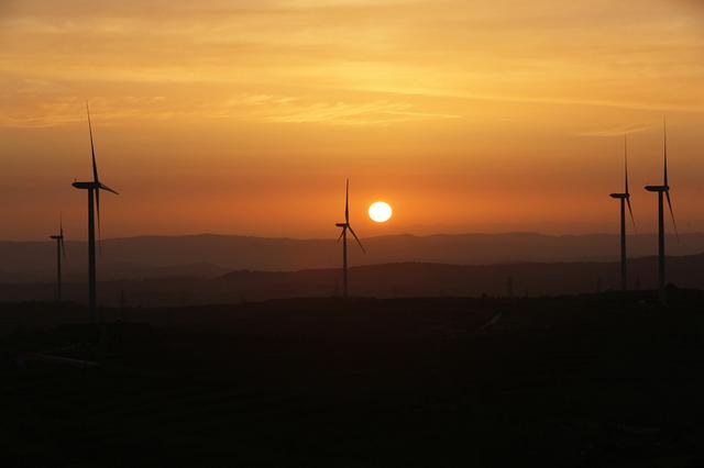 夏日時(shí)節(jié),在位于黃土高原的甘肅省定西市,風(fēng)電基地風(fēng)機(jī)迎風(fēng)旋轉(zhuǎn),與梯田、村莊相映成景,蔚為壯觀。