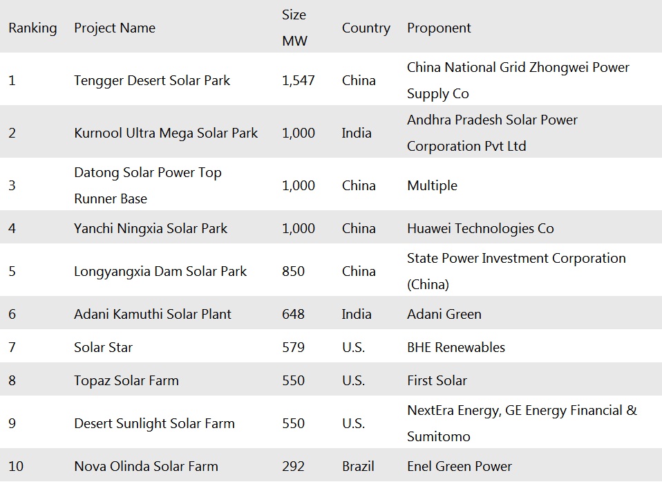 根據IEEFA的統(tǒng)計,全球最大的經營實用規(guī)模的太陽能項目集中在中國和印度,包括: