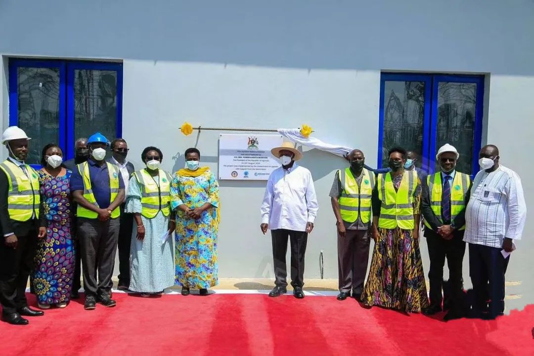 烏干達總統(tǒng)穆塞韋尼(前排右五)為Nebbi變電站項目揭牌