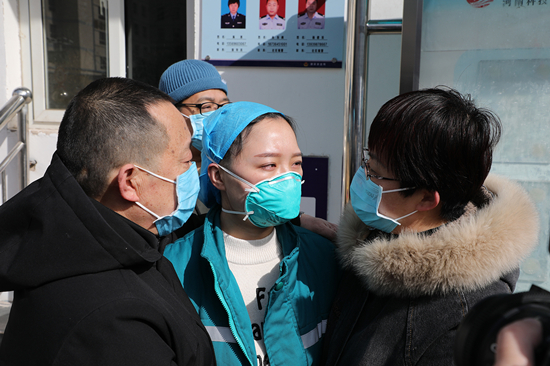 離別時(shí)刻,家人縱有千般不舍,只能道一聲“珍重”,并目送他們?nèi)デ胺剑驗(yàn)檫@場(chǎng)戰(zhàn)“疫”必須要打贏!