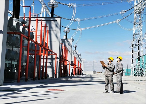 國(guó)網(wǎng)冀北電力運(yùn)維人員在特高壓張家口站巡視設(shè)備,全力保障電力可靠供應(yīng)。