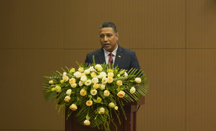錢智民指出,為積極應(yīng)對(duì)全球氣候變化帶來的挑戰(zhàn),中國提出“3060”雙碳目標(biāo),致力于和全球一道向低碳和零碳社會(huì)發(fā)展。國家電投緊緊圍繞中國“3060”雙碳目標(biāo),加快建設(shè)具有全球競(jìng)爭(zhēng)力的世界一流清潔能源企業(yè)。目前裝機(jī)總規(guī)模超過2億千瓦,清潔能源發(fā)電裝機(jī)超過1.2億千瓦,境外投資運(yùn)營總裝機(jī)達(dá)到765萬千瓦,在綠色低碳發(fā)展上取得了顯著成效。太平洋島國具有豐富的可再生能源稟賦,國家電投愿與各方探討在能源規(guī)劃與咨詢、清潔能源技術(shù)培訓(xùn)、清潔能源項(xiàng)目開發(fā)等領(lǐng)域的合作,努力打造中國和太平洋島國能源合作典范。