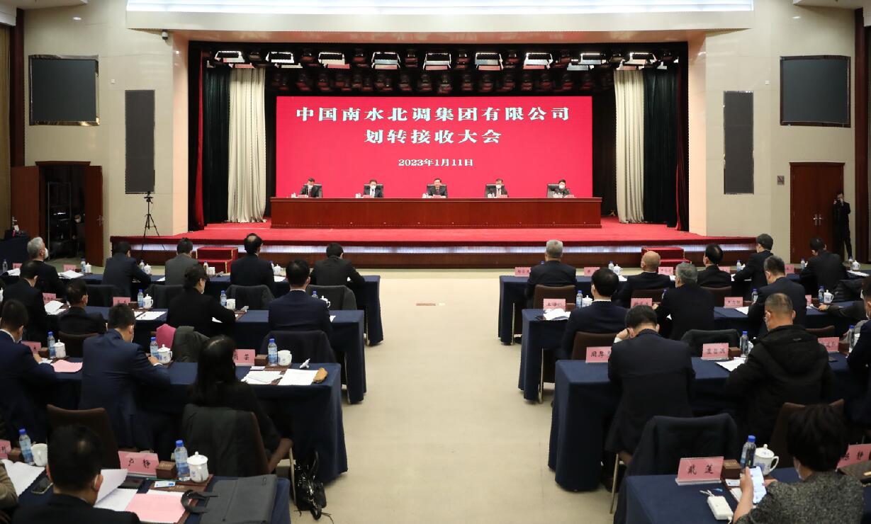 2023年1月11日,中國南水北調(diào)集團(tuán)有限公司劃轉(zhuǎn)接收大會在京召開。會議宣布自2022年12月31日起中國南水北調(diào)集團(tuán)列入國務(wù)院國資委履行出資人職責(zé)企業(yè)名單,水利部、國務(wù)院國資委負(fù)責(zé)同志現(xiàn)場簽署了《中國南水北調(diào)集團(tuán)有限公司移交國務(wù)院國有資產(chǎn)監(jiān)督管理委員會管理交接書》。國資委黨委書記張玉卓,水利部黨組成員、副部長田學(xué)斌出席會議并講話。國資委黨委委員、副主任翁杰明主持會議并宣讀了中國南水北調(diào)集團(tuán)劃轉(zhuǎn)接收實施方案。中國南水北調(diào)集團(tuán)主要負(fù)責(zé)同志作了發(fā)言。