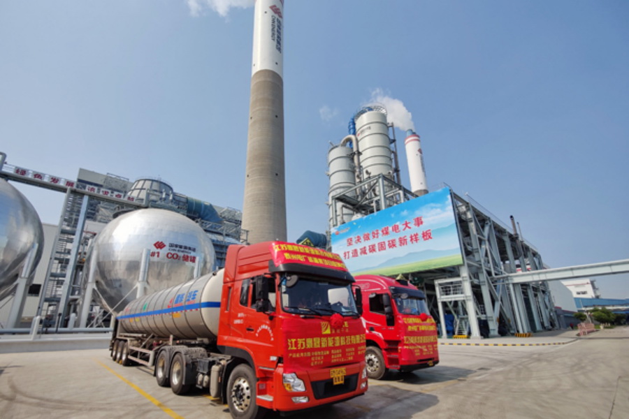 6月2日,國(guó)家能源集團(tuán)江蘇泰州電廠CCUS項(xiàng)目正式投產(chǎn),裝滿液態(tài)二氧化碳的罐車蓄勢(shì)待發(fā)。該項(xiàng)目捕集到的二氧化碳通過槽車運(yùn)往用戶。