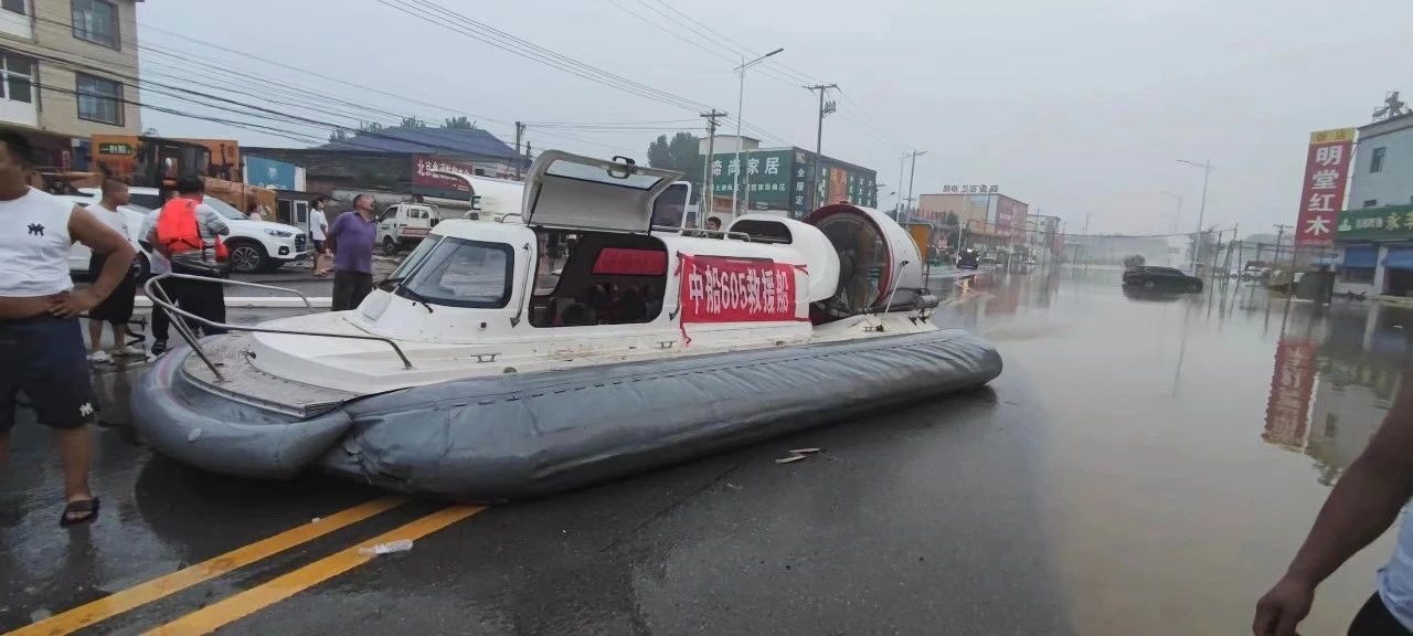 8月2日,中國船舶六〇五院出動最新科研成果“陸海無限通行”HW-15氣墊船抵達深水一線,參與河北涿州搶險救災,支援當地政府,撤離受災群眾和運送物資。