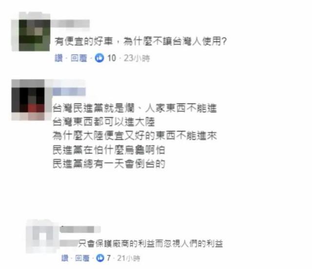 根據(jù)臺灣地區(qū)現(xiàn)行政策,大陸汽車整車、底盤及部分零組件仍被列為“禁入項(xiàng)”。而島內(nèi)民眾對民進(jìn)黨當(dāng)局的做法并不買賬,相關(guān)報(bào)道也引發(fā)網(wǎng)民“吐槽”——“有便宜的好車,為什么不讓臺灣人使用”“民進(jìn)黨能讓它進(jìn)來嗎?那豈不是影響了歐美進(jìn)口車的行情”。更有不少批評聲音指出,島內(nèi)汽車市場在貿(mào)易保護(hù)主義作用下簡直是“一潭死水”,創(chuàng)新能力越來越弱。