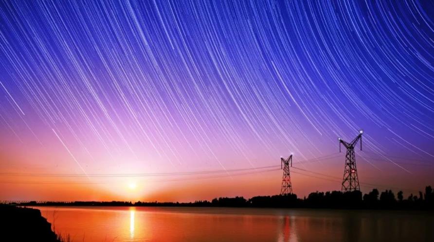 星空之下,±800千伏上海廟—臨沂、晉北—南京特高壓直流輸電工程跨越黃河