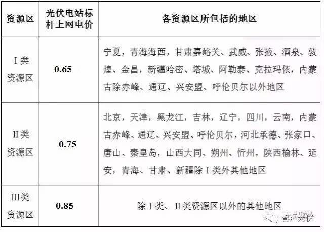 全國分為三類電價區(qū),光伏標桿電價分別為0.65元/kWh、0.75元/kWh、0.85元/kWh。