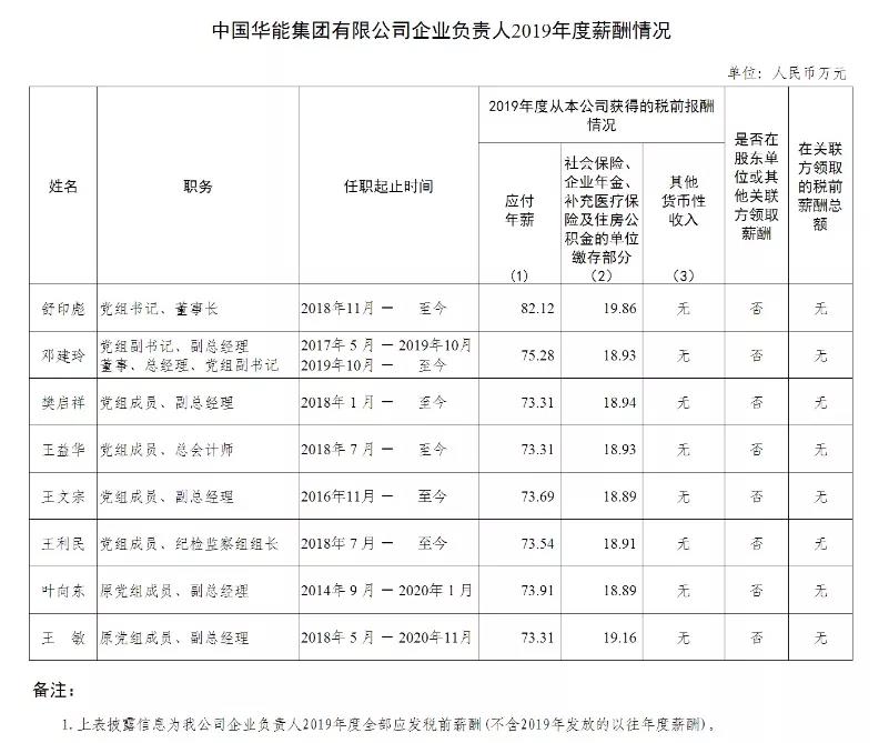 國家電力投資集團(tuán)有限公司企業(yè)負(fù)責(zé)人2019年度薪酬情況