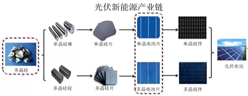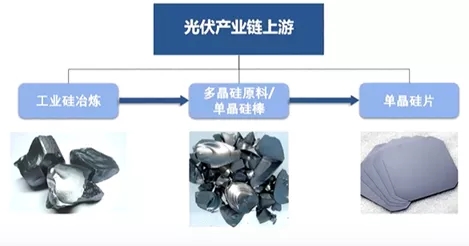 光伏產(chǎn)業(yè)鏈相對簡單,產(chǎn)業(yè)鏈上游主要是將半導(dǎo)體材料硅提煉成晶硅,中游廠商再將晶硅制作成電池片并生產(chǎn)相關(guān)的光伏組件,下游廠商則將電池片組裝成完整的發(fā)電系統(tǒng)并進行維護和管理。