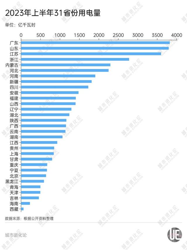 廣東、山東、江蘇全社會(huì)用電量在3000億千瓦時(shí)階段“三雄相爭”,浙江、內(nèi)蒙古和河北競速2000億千瓦時(shí)階段,而剩下的河南、新疆等12個(gè)全社會(huì)用電量達(dá)到千億千瓦時(shí)的省份,只能爭奪剩下的4個(gè)席位。