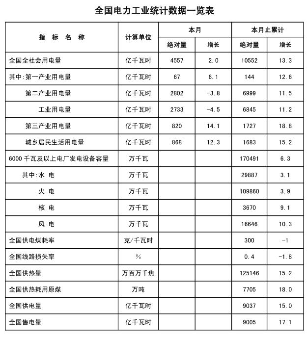 注:全社會(huì)用電量指標(biāo)是全口徑數(shù)據(jù)。