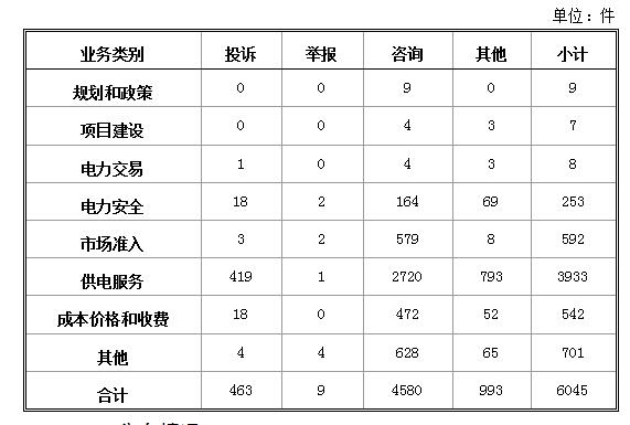 投訴舉報主要集中在電力行業(yè),共472件。從業(yè)務分類情況看,電力交易方面1件,占0.21%;電力安全方面20件,占4.24%;市場準入方面5件,占1.06%;供電服務方面420件,占88.98%;成本價格和收費方面18件,占3.81%;其他方面8件,占1.69%。(2018年1月電力行業(yè)有效信息按業(yè)務分類情況見表二)