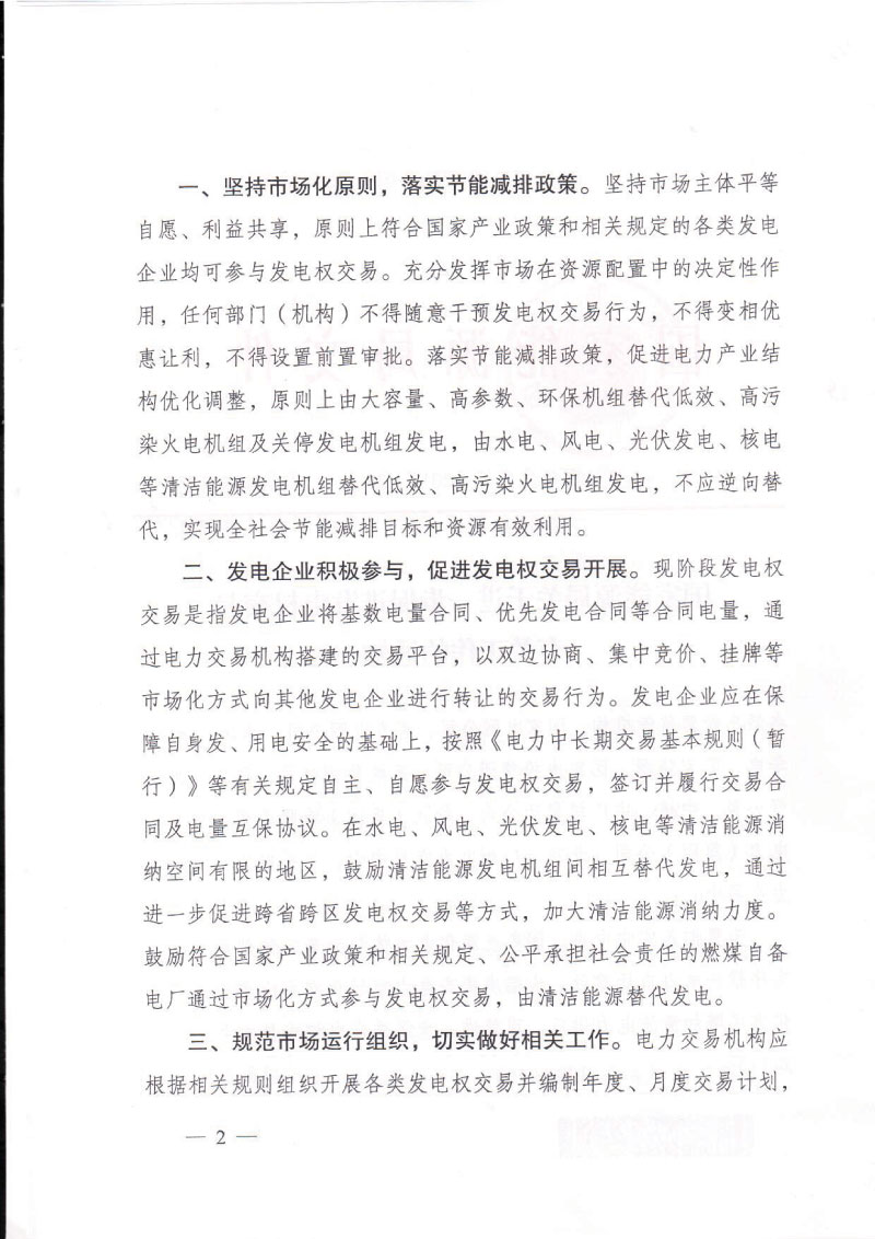 《通知》明確,要從五個(gè)方面穩(wěn)妥有序推進(jìn)電力市場建設(shè),大幅度提高電力市場化交易比重。一是堅(jiān)持市場化原則,落實(shí)節(jié)能減排政策。堅(jiān)持市場主體平等自愿、利益共享,原則上符合國家產(chǎn)業(yè)政策和相關(guān)規(guī)定的各類發(fā)電企業(yè)均可參與發(fā)電權(quán)交易。二是發(fā)電企業(yè)積極參與,促進(jìn)發(fā)電權(quán)交易開展。現(xiàn)階段發(fā)電權(quán)交易是指發(fā)電企業(yè)將基數(shù)電量合同、優(yōu)先發(fā)電合同等合同電量,通過電力交易機(jī)構(gòu)搭建的交易平臺(tái),以雙邊協(xié)商、集中競價(jià)、掛牌等市場化方式向其他發(fā)電企業(yè)進(jìn)行轉(zhuǎn)讓的交易行為。三是規(guī)范市場運(yùn)行組織,切實(shí)做好相關(guān)工作。電力交易機(jī)構(gòu)應(yīng)根據(jù)相關(guān)規(guī)則組織開展各類發(fā)電權(quán)交易并編制年度、月度交易計(jì)劃,及時(shí)完成結(jié)算,做好電力交易信息披露等相關(guān)工作。四是持續(xù)完善交易規(guī)則,積極推進(jìn)市場建設(shè)。各地發(fā)電權(quán)交易應(yīng)與電力市場建設(shè)相關(guān)工作統(tǒng)籌考慮,做好發(fā)電權(quán)交易與優(yōu)先發(fā)電優(yōu)先購電計(jì)劃以及其他電力交易品種之間的協(xié)調(diào)與銜接,原則上由清潔能源優(yōu)先發(fā)電計(jì)劃外電量替代火電基數(shù)電量。五是加強(qiáng)電力市場監(jiān)管,維護(hù)市場交易秩序。各派出能源監(jiān)管機(jī)構(gòu)要進(jìn)一步加強(qiáng)對(duì)發(fā)電權(quán)交易工作的綜合指導(dǎo),切實(shí)加強(qiáng)發(fā)電權(quán)交易監(jiān)管,維護(hù)公平公正的市場秩序。