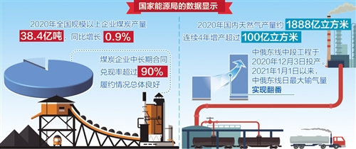 國(guó)家能源局30日發(fā)布數(shù)據(jù)顯示,2020年全國(guó)規(guī)模以上企業(yè)煤炭產(chǎn)量38.4億噸,同比增長(zhǎng)0.9%;12月煤炭產(chǎn)量3.5億噸,同比增長(zhǎng)3.2%。全國(guó)煤炭日產(chǎn)量持續(xù)保持1100萬(wàn)噸左右的較高水平,煤炭供應(yīng)總體平穩(wěn)。同時(shí),天然氣產(chǎn)量持續(xù)維持歷史高位。
