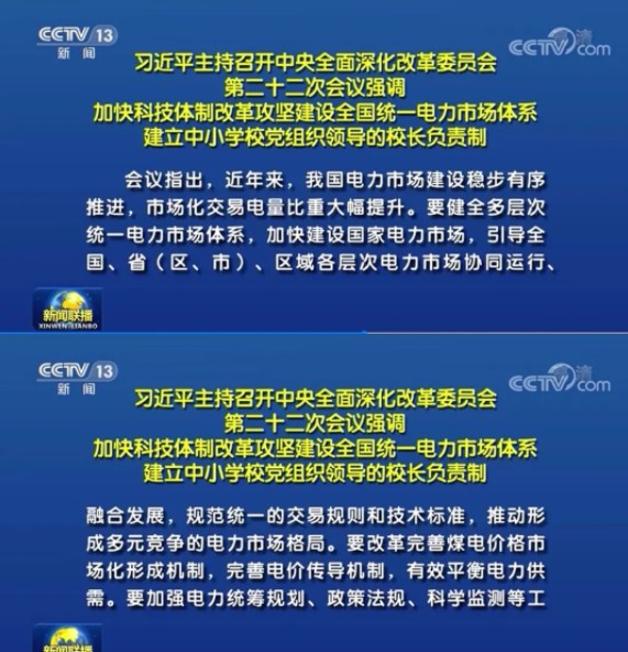 習近平在主持會議時強調,開展科技體制改革攻堅,目的是從體制機制上增強科技創(chuàng)新和應急應變能力,突出目標導向、問題導向,抓重點、補短板、強弱項,錨定目標、精準發(fā)力、早見成效,加快建立保障高水平科技自立自強的制度體系,提升科技創(chuàng)新體系化能力。要遵循電力市場運行規(guī)律和市場經濟規(guī)律,優(yōu)化電力市場總體設計,實現(xiàn)電力資源在全國更大范圍內共享互濟和優(yōu)化配置,加快形成統(tǒng)一開放、競爭有序、安全高效、治理完善的電力市場體系。加強黨對教育工作的全面領導是辦好教育的根本保證,要在中小學校建立黨組織領導的校長負責制,把政治標準和政治要求貫穿辦學治校、教書育人全過程各方面,堅持為黨育人、為國育才,保證黨的教育方針和黨中央決策部署在中小學校得到貫徹落實。要加強文物保護利用和文化遺產保護傳承,提高文物研究闡釋和展示傳播水平,讓文物真正活起來,成為加強社會主義精神文明建設的深厚滋養(yǎng),成為擴大中華文化國際影響力的重要名片。要支持中關村國家自主創(chuàng)新示范區(qū)更好發(fā)揮科技資源和制度創(chuàng)新優(yōu)勢,開展高水平科技自立自強先行先試改革。