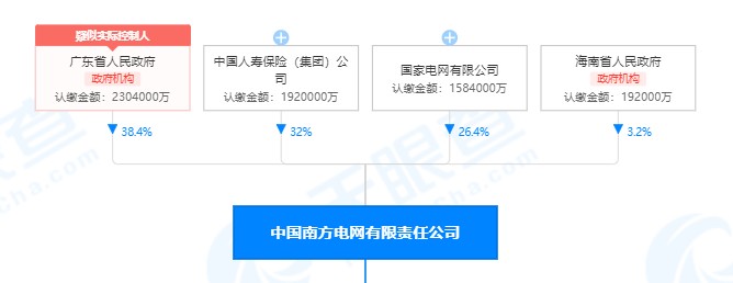 根據(jù)公開(kāi)資料查詢(xún),本次調(diào)整前中國(guó)南方電網(wǎng)總注冊(cè)資本為600億元。共有4家股東,股本比例是:廣東省人民政府出資230.4億,占比38.4%,為第一大股東,中國(guó)人壽保險(xiǎn)(集團(tuán))公司出資192億,占比32%,排名第二,國(guó)家電網(wǎng)有限公司出資158.4億,占比26.4%,排名第三,海南省人民政府認(rèn)繳19.2億,占比3.2%,排名最末。