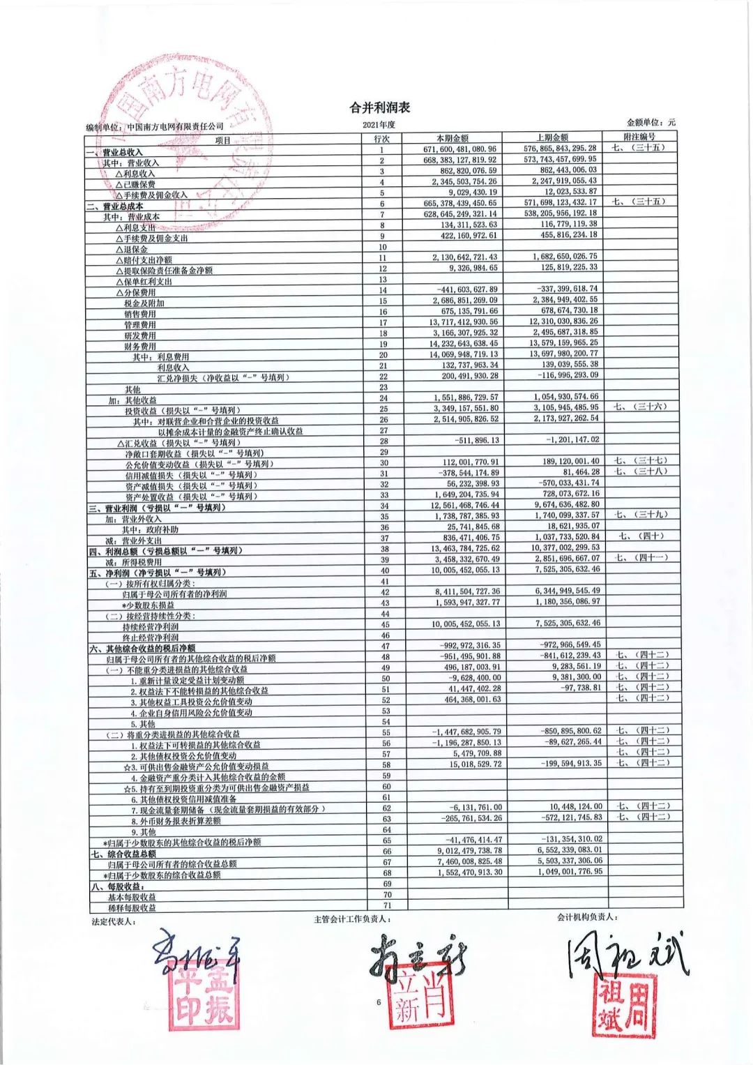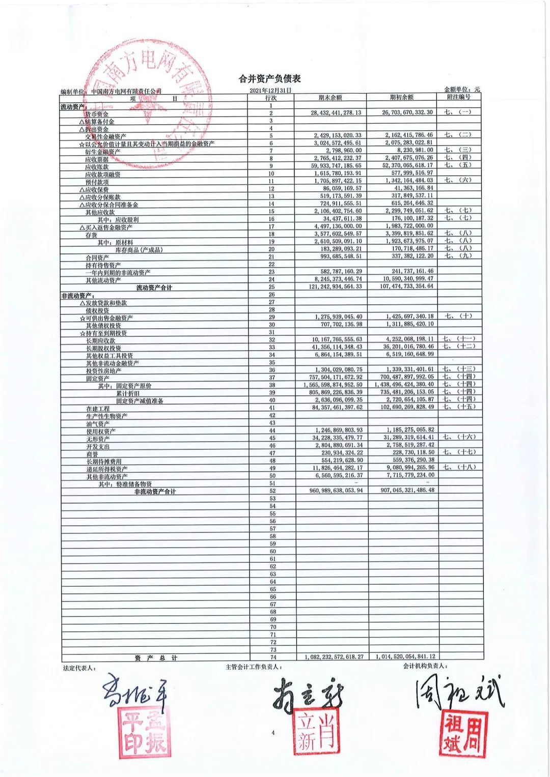 本網訊 4月29日,中國南方電網有限責任公司發(fā)布2021年財務報告。