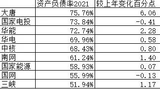 發(fā)電央企加大轉(zhuǎn)型力度,籌資投入新能源,加上去年煤電巨虧,資產(chǎn)負(fù)債率基本均上升,各大集團(tuán)間,2020年國家電投資產(chǎn)負(fù)債率最高,2021年大唐因為巨虧導(dǎo)致凈資產(chǎn)減少,資產(chǎn)負(fù)債率上升為第一位。