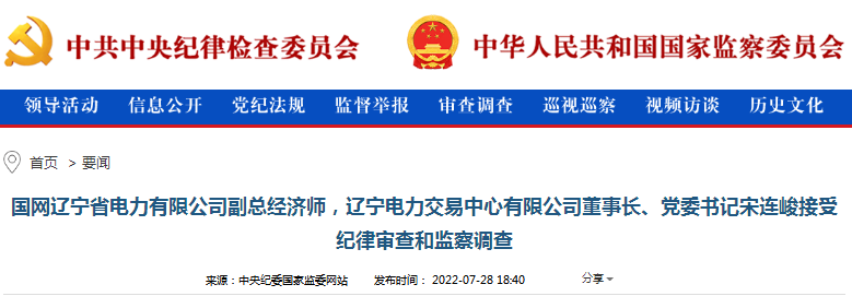 本網(wǎng)訊 中央紀委國家監(jiān)委網(wǎng)站7月28日消息,據(jù)中央紀委國家監(jiān)委駐國家電網(wǎng)有限公司紀檢監(jiān)察組、遼寧省紀委監(jiān)委消息:國網(wǎng)遼寧省電力有限公司副總經濟師,遼寧電力交易中心有限公司董事長、黨委書記宋連峻涉嫌嚴重違紀違法,目前正接受中央紀委國家監(jiān)委駐國家電網(wǎng)有限公司紀檢監(jiān)察組紀律審查和朝陽市監(jiān)察委員會監(jiān)察調查。
