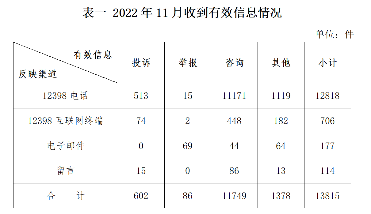 2022年11月收到的有效信息中:
