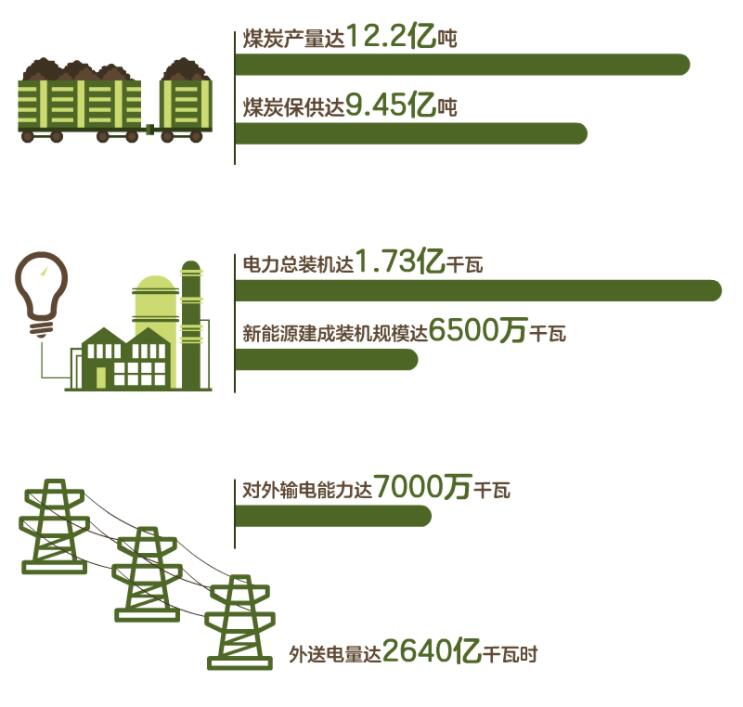 2022年,內蒙古自治區(qū)能源經濟多項指標在全國保持領先——煤炭產量達到12.2億噸,電力總裝機達到1.73億千瓦,新能源建成裝機規(guī)模達到6500萬千瓦,煤炭保供達到9.45億噸,外送電量達到2640億千瓦時,對外輸電能力達7000萬千瓦。