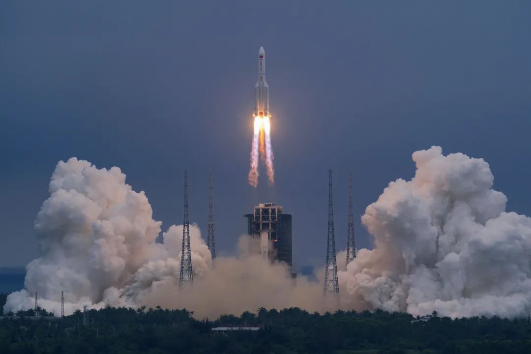 征途無限,前行不怠。圖為長(zhǎng)征五號(hào)B運(yùn)載火箭發(fā)射空間站天和核心艙。(宿東 攝)