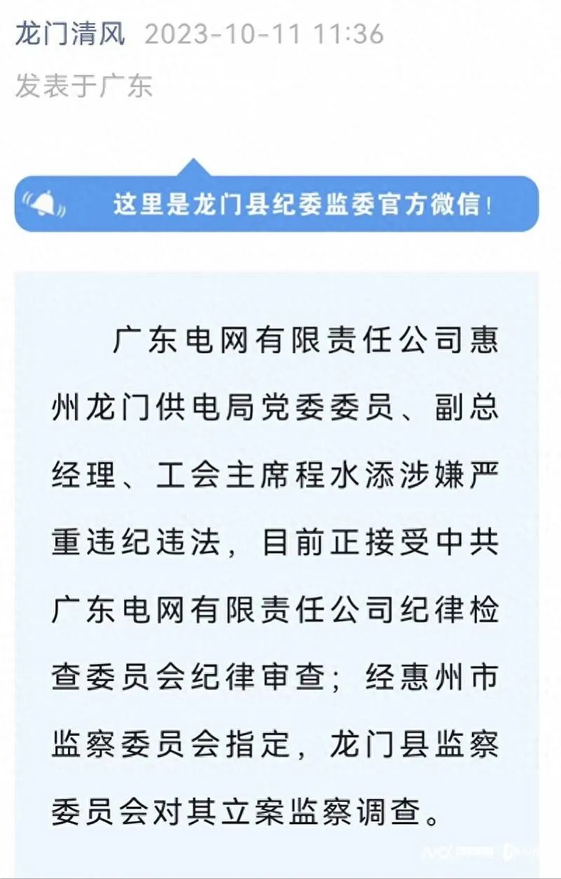 涉嚴(yán)重違紀(jì)違法!惠州龍門供電局兩人同日被查