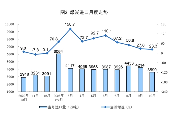1—10月份,生產(chǎn)原煤38.3億噸,同比增長3.1%。進口煤炭3.8億噸,同比增長66.8%。