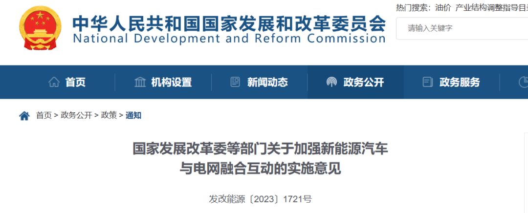 國家發(fā)展改革委等部門關(guān)于加強(qiáng)新能源汽車與電網(wǎng)融合互動(dòng)的實(shí)施意見