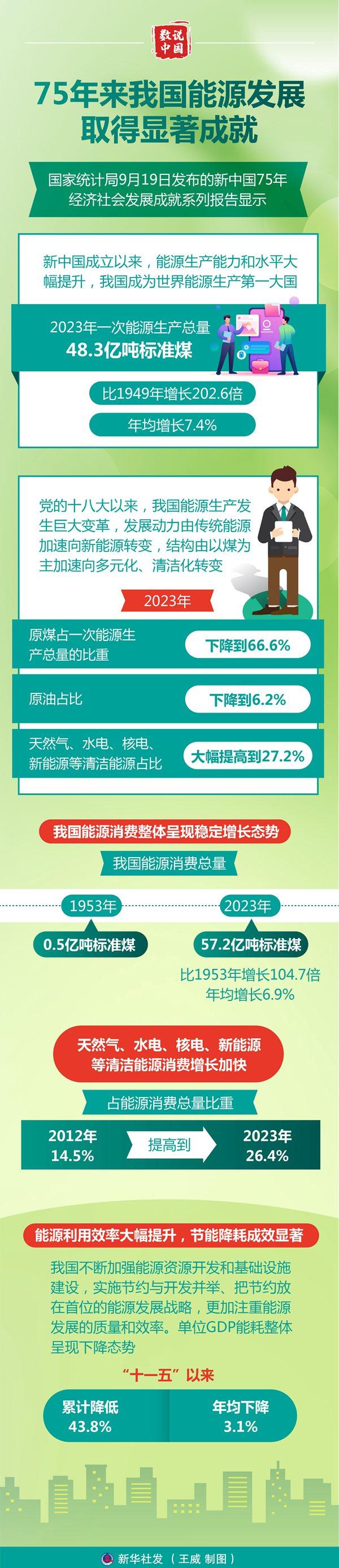 國家統(tǒng)計(jì)局19日發(fā)布的新中國75年經(jīng)濟(jì)社會(huì)發(fā)展成就系列報(bào)告顯示,75年來,我國能源發(fā)展取得顯著成就,供應(yīng)保障能力持續(xù)增強(qiáng),綠色低碳轉(zhuǎn)型深入推進(jìn),能源利用效率不斷提升,節(jié)能降耗成效明顯。