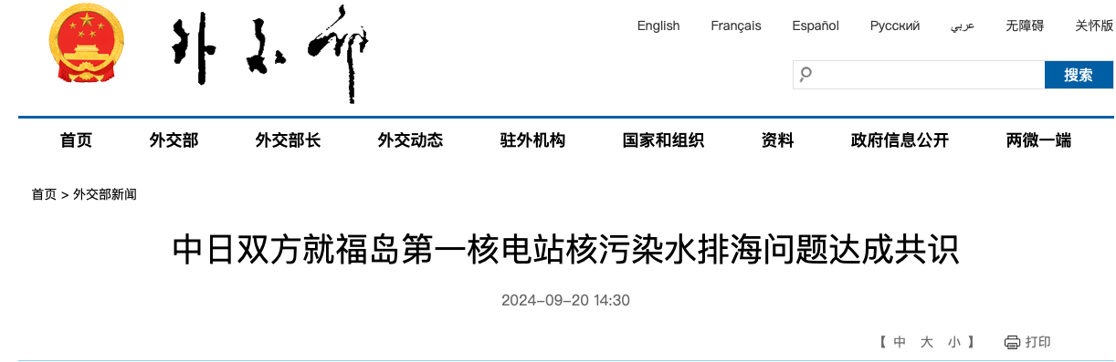 外交部:中日雙方就福島第一核電站核污染水排海問題達(dá)成共識