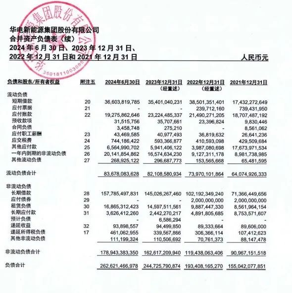 盡管華電新能在行業(yè)中占據(jù)領(lǐng)先地位,但其財(cái)務(wù)結(jié)構(gòu)與經(jīng)營(yíng)風(fēng)險(xiǎn)不容忽視。據(jù)公司合并資產(chǎn)負(fù)債表顯示,2024年6月30日,公司應(yīng)收賬款高達(dá)428.71億元,主要為可再生能源補(bǔ)貼,占營(yíng)收比例連續(xù)4年半超過(guò)100%,導(dǎo)致經(jīng)營(yíng)活動(dòng)現(xiàn)金流高度依賴外部融資。同時(shí),資產(chǎn)負(fù)債率長(zhǎng)期維持在70%以上,短期借款366億元,貨幣資金83.27億元,流動(dòng)性壓力顯著。