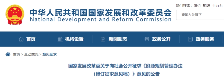國家發(fā)展改革委關(guān)于向社會公開征求《能源規(guī)劃管理辦法