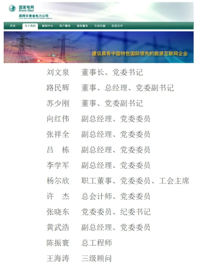 國(guó)網(wǎng)甘肅省電力公司原董事、黨委副書記王海濤轉(zhuǎn)為三級(jí)顧問,蘇少剛接任國(guó)網(wǎng)甘肅省電力公司董事、黨委副書記。