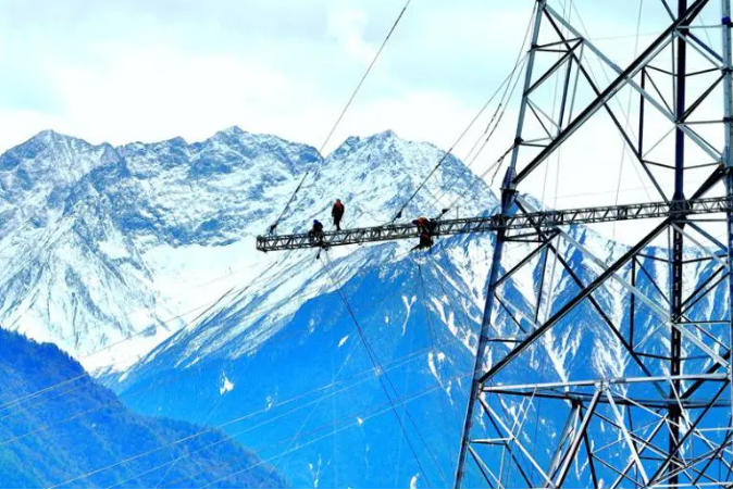 ▲國網(wǎng)冀北電力員工在阿壩—成都東1000千伏特高壓交流工程現(xiàn)場(chǎng)施工