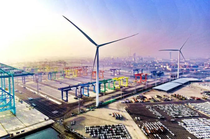 ▲天津港北疆港區(qū)C段智能化集裝箱碼頭的“風(fēng)光儲(chǔ)荷一體化”綠色能源系統(tǒng)
