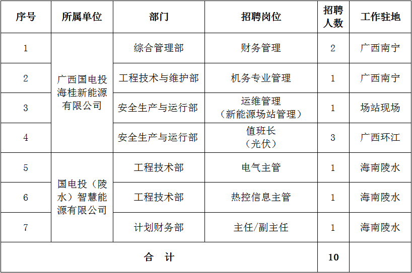 詳見(jiàn)《國(guó)家電力投資集團(tuán)有限公司海南分公司及所屬單位招聘崗位職責(zé)及任職條件》(附件1)。