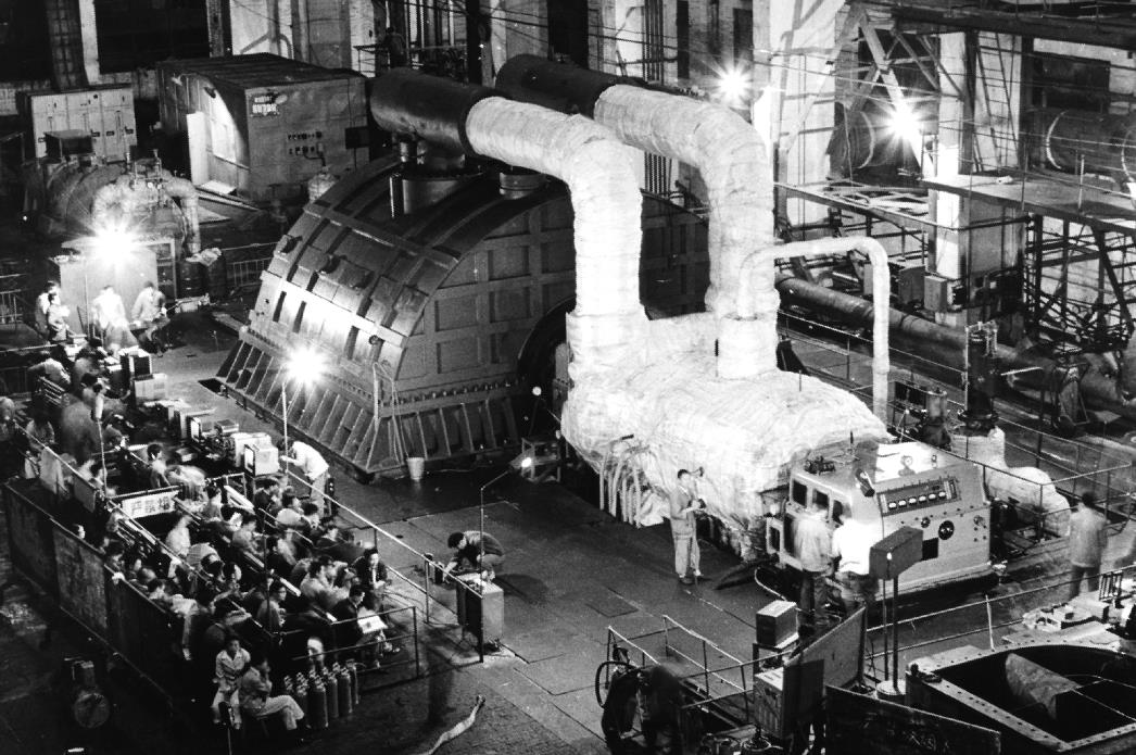 上個(gè)世紀(jì)八十年代,東方電氣集團(tuán)自主研制的第一代東方“爭(zhēng)氣機(jī)”——30萬千瓦汽輪機(jī)在廠內(nèi)一次試車成功。