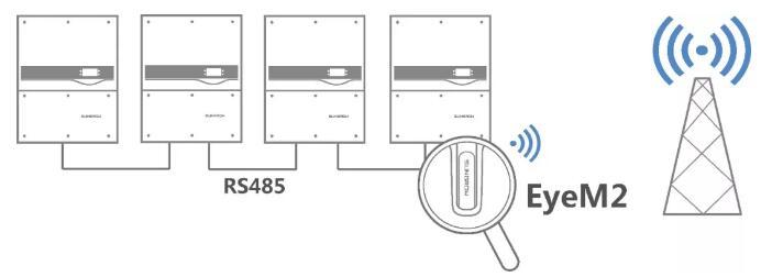 逆變器標(biāo)配RS485通訊接口,通過通訊線纜“手拉手”式連接,只需給其中一臺(tái)逆變器配置EyeM2無線通訊模塊,由其集中上傳所有數(shù)據(jù),不僅讓組網(wǎng)更簡單,還能夠節(jié)省通訊模塊及流量費(fèi)用;同時(shí)通過陽光云APP掃描通訊模塊二維碼接入智慧能源管理平臺(tái),一鍵掃碼建站,大大提升建站效率。